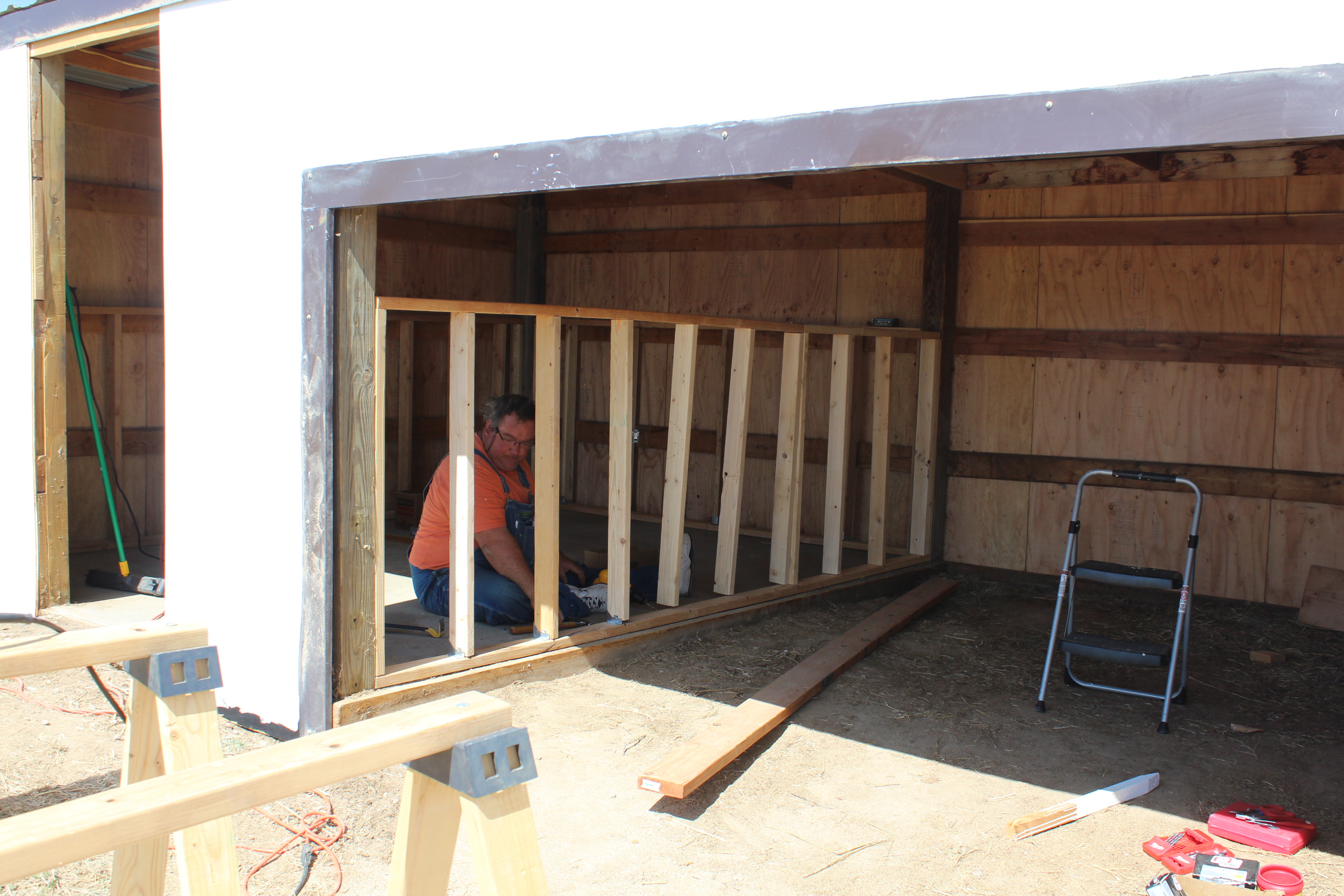 The coop project is coming along steadily. Zina finished priming it so the new paneling wouldn’t get weathered while we build (we are actually expecting snow again Wednesday – it was 75 degrees today! – no global weirding involved! ; ) ) I have begun framing the interior. While it is much less heavy and awkward than hanging the new panels, I have been reminded of what squat-thrusts were all about in high school PE: “Up, Down, measure, lift, move, cut, haul, squat, nail, drill, up…. repeat”.