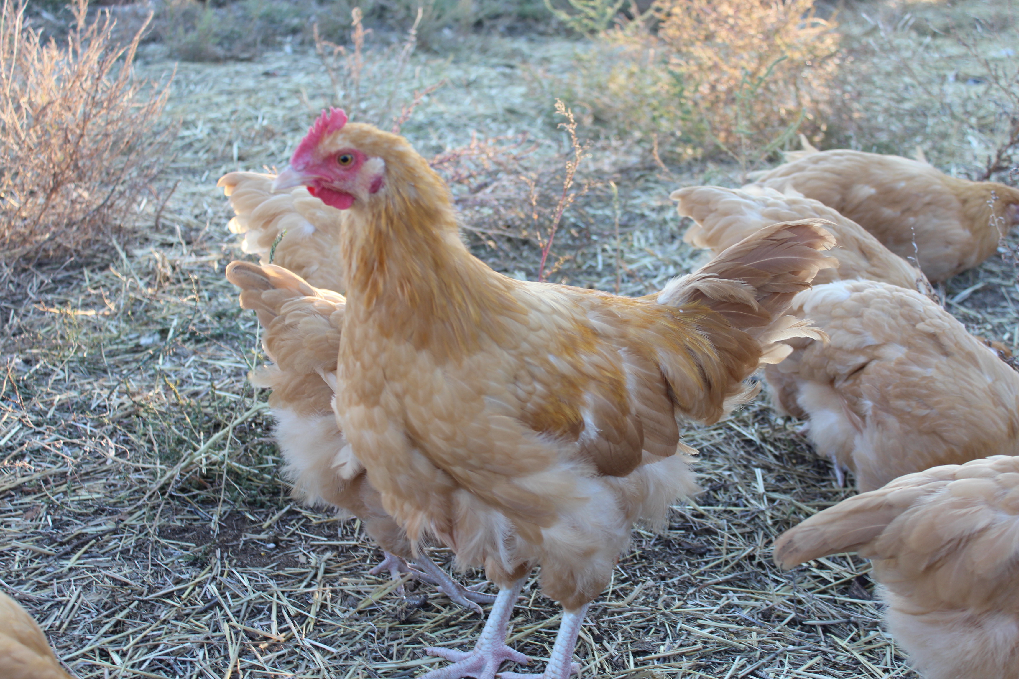It looks like we are going to need some chicken chaperones!  The maturest rooster is now crowing.  I don’t know why people find that sound annoying… I think it sounds… farmy.  Ask me again in a year or so when they won’t shut up and I may have a different perspective.  He is hilarious though.  They are all 13 weeks old this weekend and it sounds like if you simply convert weeks into years the roosters are 13 year old boys who’s voices are starting to change.  They are getting their shiny rooster plumage as well.  Their voices, combined with a maturing body they don’t know what to do with, makes for some entertainment.  The hens DON’T agree however!  While the roosters are trying their “techniques” the only thing happening to the hens is loss of neck feathers.  There is screeching and kicking and more of a fight than finesse.  The roosters come away looking pretty stupid and the hens, disgusted.  I remember just what they are going through! ; )