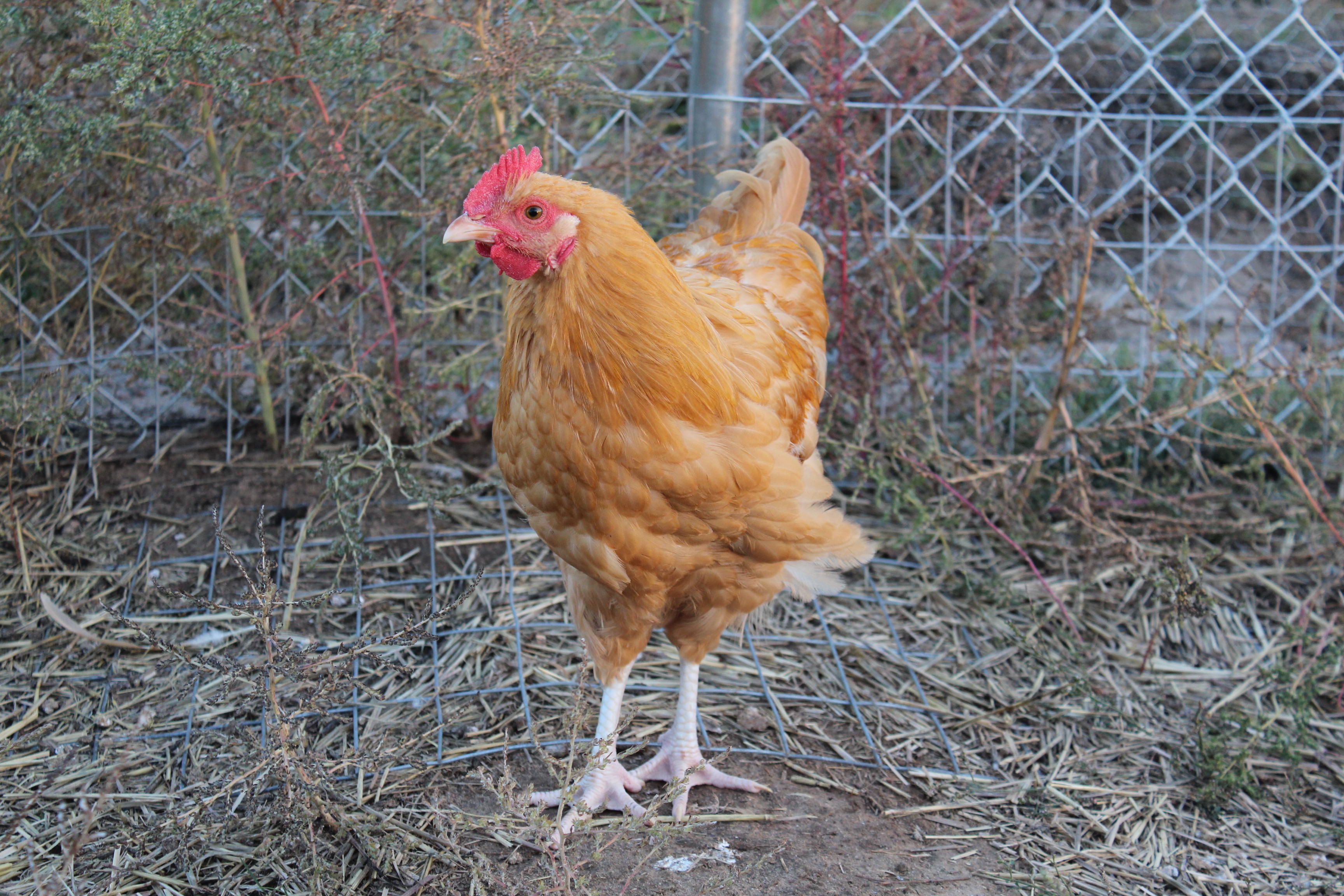 Here are the latest chicken shots…. this time mostly roosters.  The one hen (that we have named “feets” because of her orange legs – all the others have kind of a tan color) that has sort of bonded with me still runs out to greet me every evening and hops up on my shoulder and spends the evening whispering little chicken nothings in my ear.