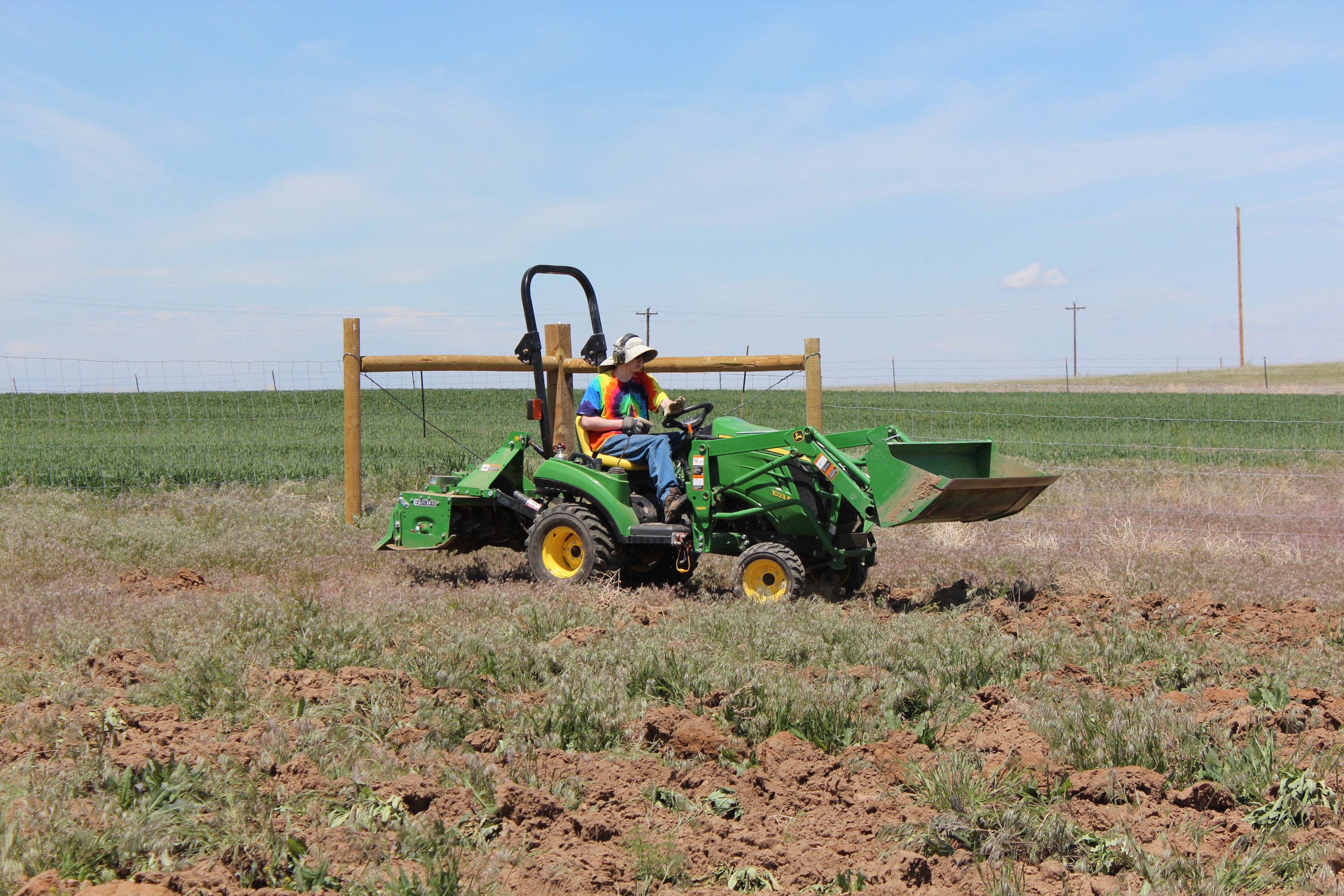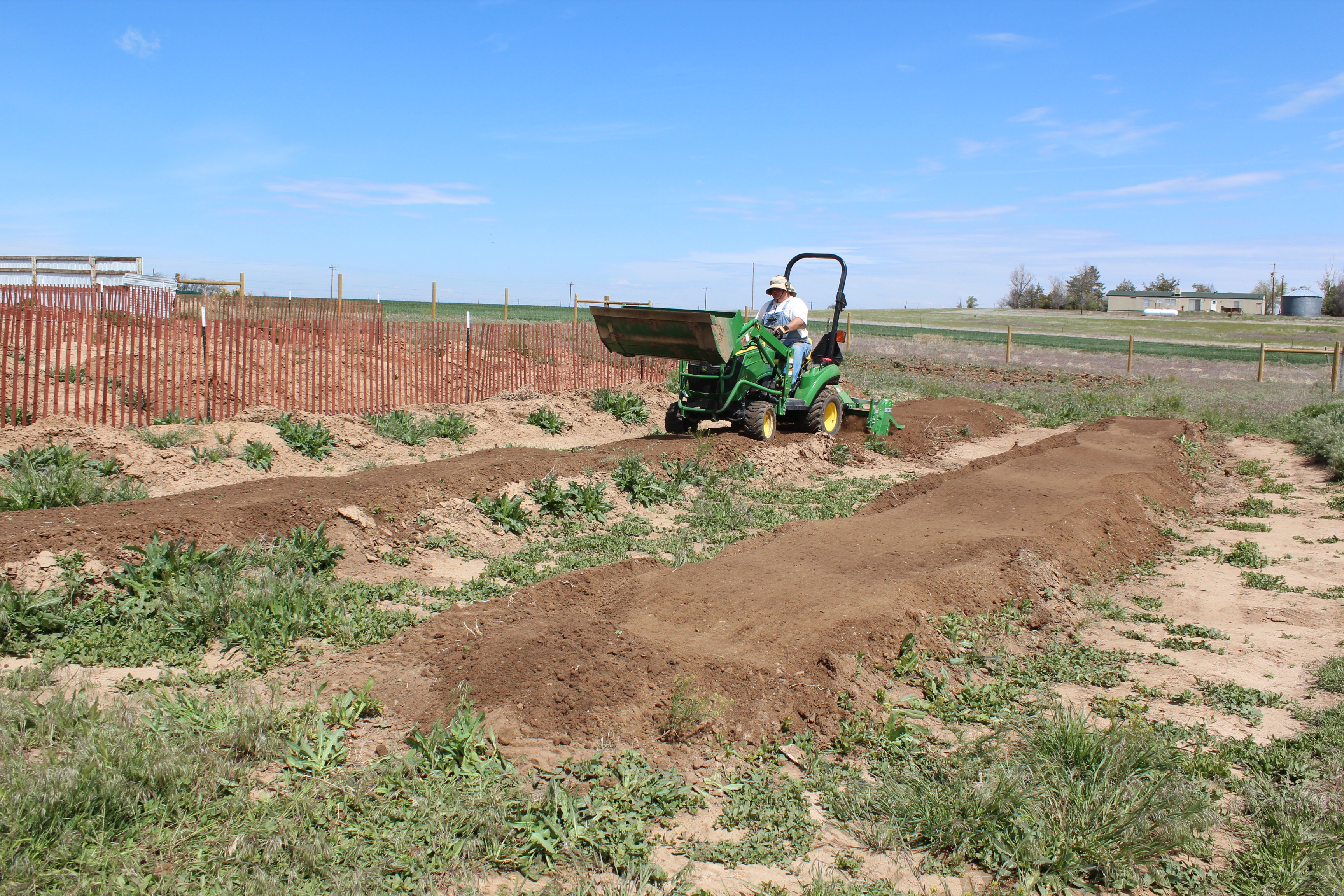 Farmer Jon was out on the little tractor and tilled up the garden beds. It was with the 4×4 engaged and in low range gear climbing over the hills and valleys of the piles that have been sitting there waiting for weeks! Aaron took over after that task was completed and tilled up the corn and sunflower patch. Zina started weeding what the tiller didn’t rip up and the garden area now looks like a garden!