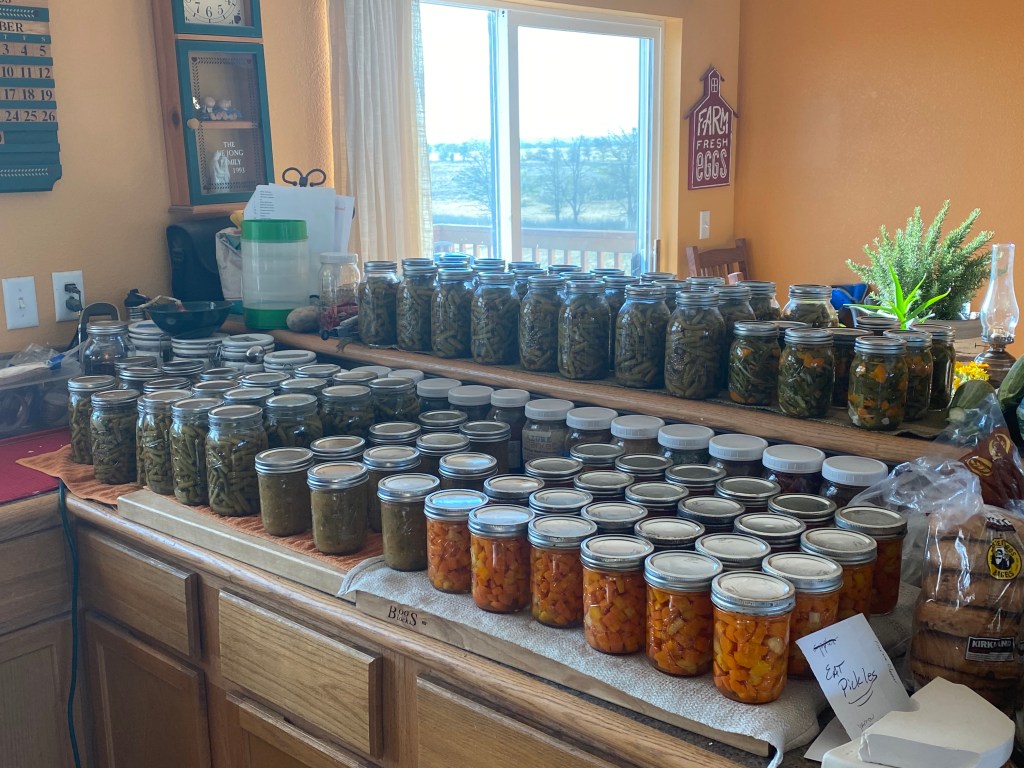 It seems that from the core of our food stuffs, Green Beans, Corn (from a local organic grower) Onions, Garlic, Canned Tomatoes, Carrots, Potatoes, Peppers, Celery, Sauerkraut and Pickles, we should be able to keep the eating interesting. This will all go along with our Eggs, Turkey, Chicken, Pork, and the Beef that will be arriving in about a month. I am pretty sure we will have at least one pregnant goat, possibly two by November, with three more set to go in the spring. This will keep us in milk, yogurt and cheese. We will also be growing all of our own lettuce during the winter in our basement growing facilities.