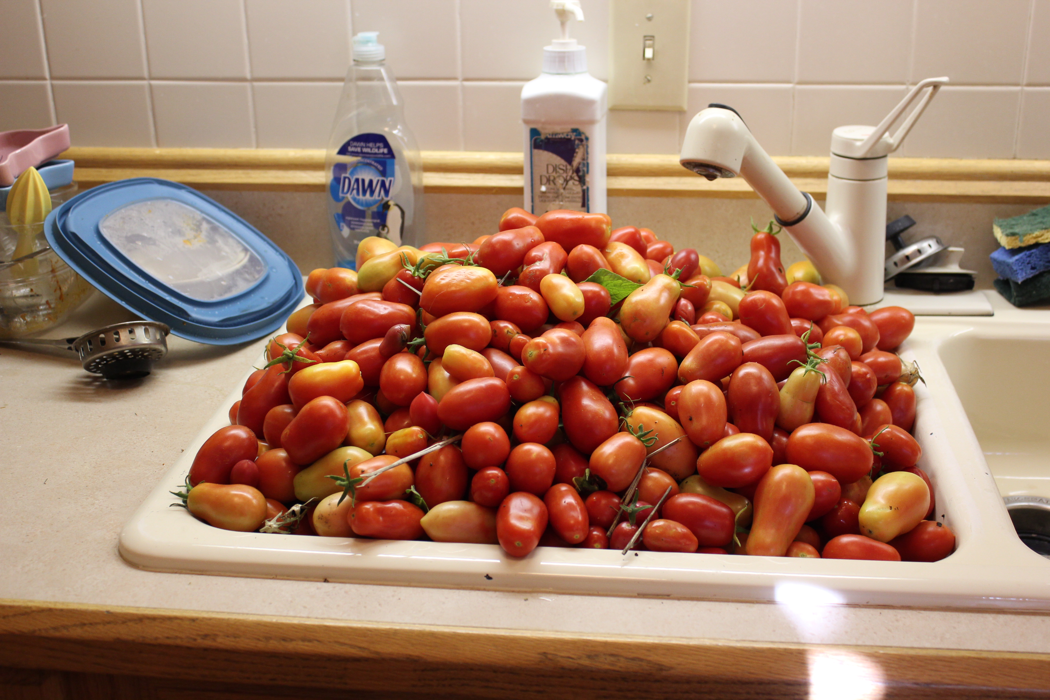 The onion harvest was crazy. However, not all of them were storage quality, so we made quarts and quarts of canned French Onion soup. The quarts up on the counter are chicken soup and chili